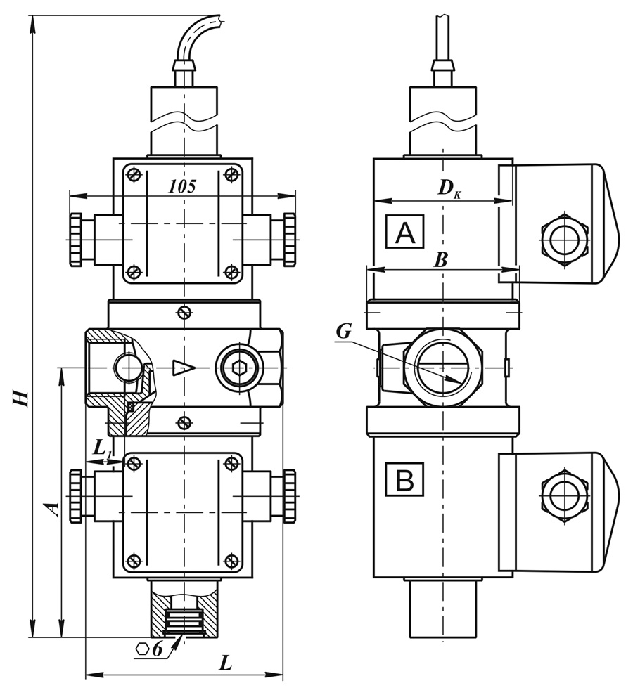 | Монтажное положение: | любое, за исключением, когда электромагнитная катушка "А" направлена вниз. |
